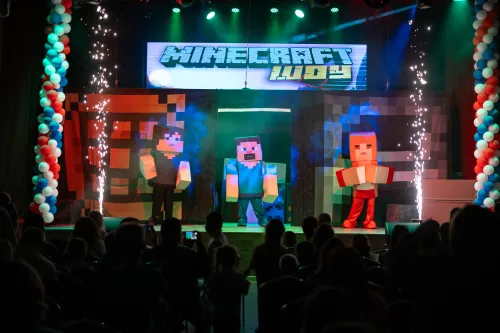 Майнкрафт – шоу – интерактивный спектакль по мотивам знаменитого игрового сюжета! Зрители станут участниками увлекательного приключения вместе с любимыми персонажами: Стивом, красавицей Марго и храбрым Джо.